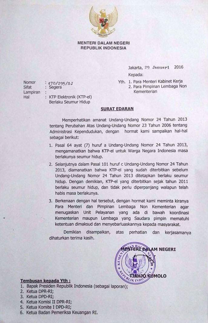“KTP-el bagi WNI masa berlakunya Seumur Hidup”