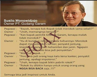 Mau Owner rokok nggak ngerokok silahkan, owner rumah Makan nggak makan juga silahkan, atau mau Owner Facebook nggak facebookan ya silakan. Sah-sah aja kan. Terpenting kitanye tetap berada di jalur yang benar.