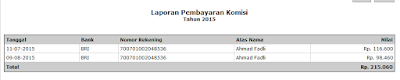 Setelah 2 Bulan memasang iklan dari kliksaya. (Penghasilan pertama baca disini) Akhirnya saya menerima kembali upah dari pemasangan iklan ini. Nominalnya memang berkurang,tapi yang dtransfernya malah bertambah daripembayaran bulan pertama. Bulan pertama Nominal saya lebih besar dariini,namun ada denda sebesar 50.000 yang disebabkan oleh ulah saya. Nah bulan keduasaya mencoba lebih bermain sesuai aturan. Alhamdulillah meski nominalnya sedikit,tapiyang dibayar tidak dipotong Denda..