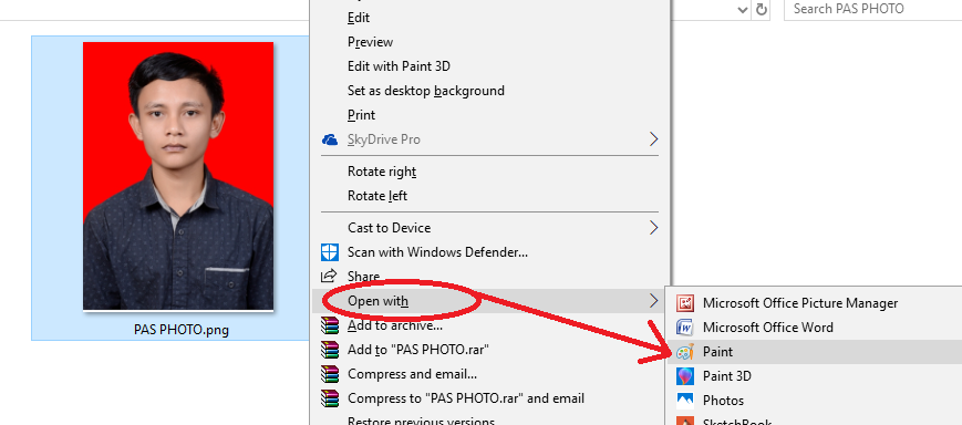 Klik Kanan pada photo, lalu klik Open With dan pilih Paint