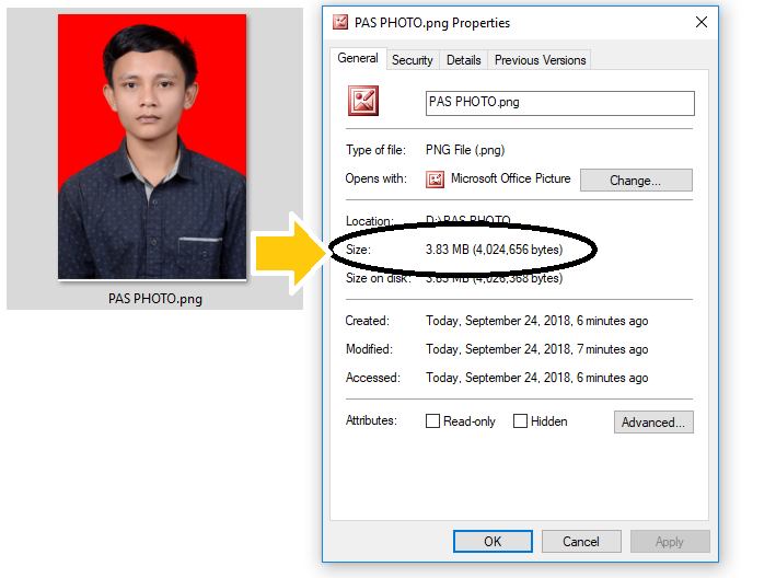 Ukuran photonya adalah 3.83 MB, tentu kita akan mengurangi ukurannya menjadi sekitar 200kb
