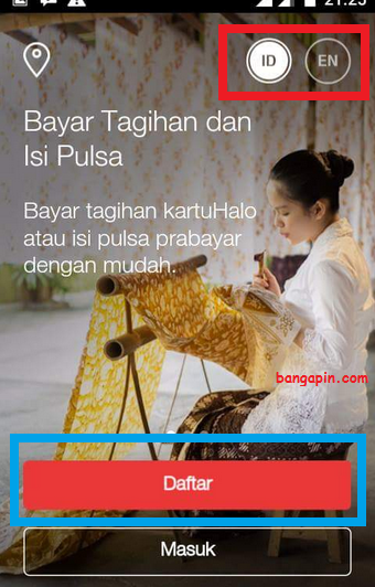 Ubah bahasa terlebih dahulu. ID untuk Bahasa Indonesia, EN untuk bahasa Inggris. Lalu Klik Daftar